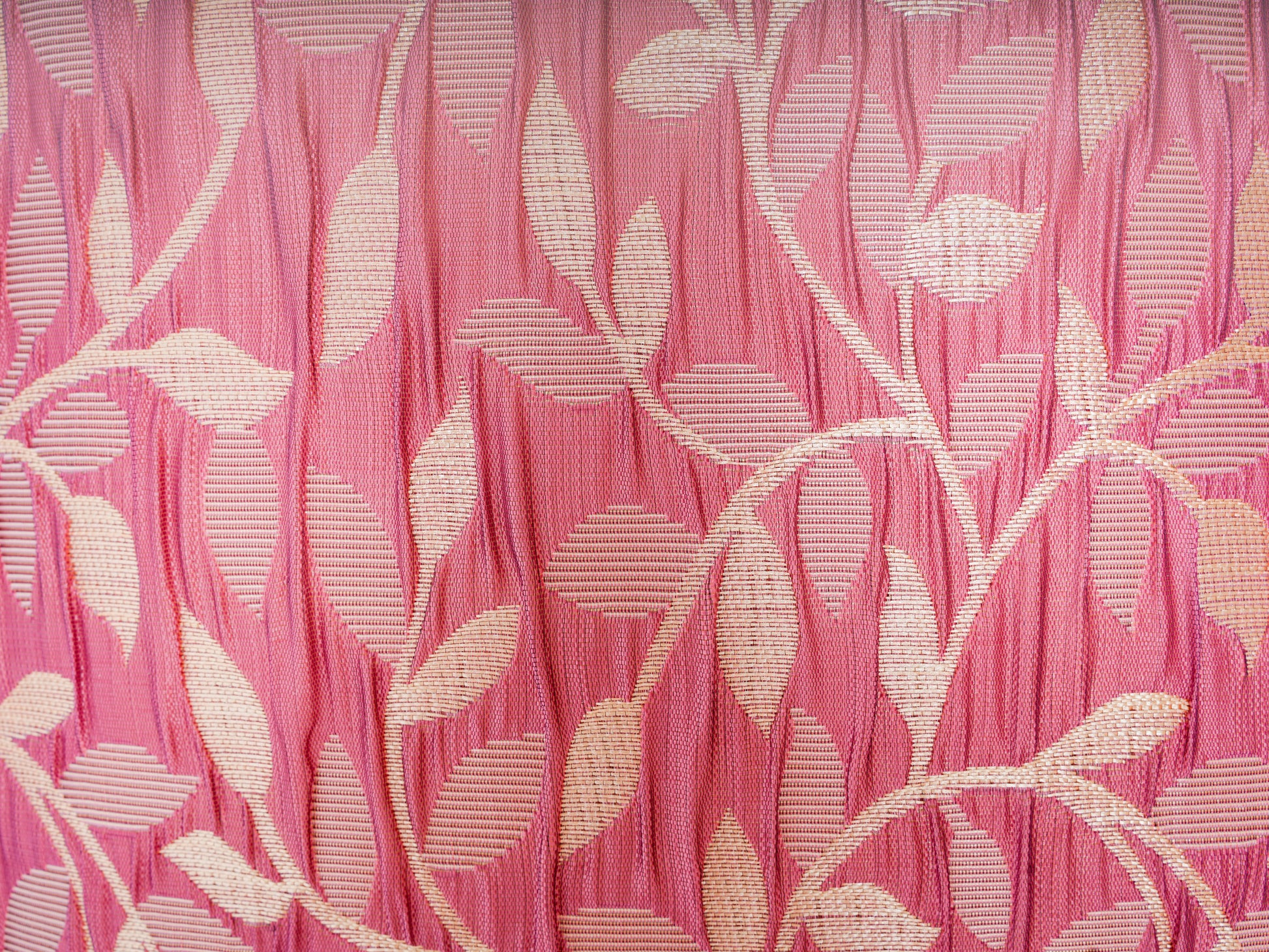 Design: Intricate golden leaf motif on a textured rose-pink base