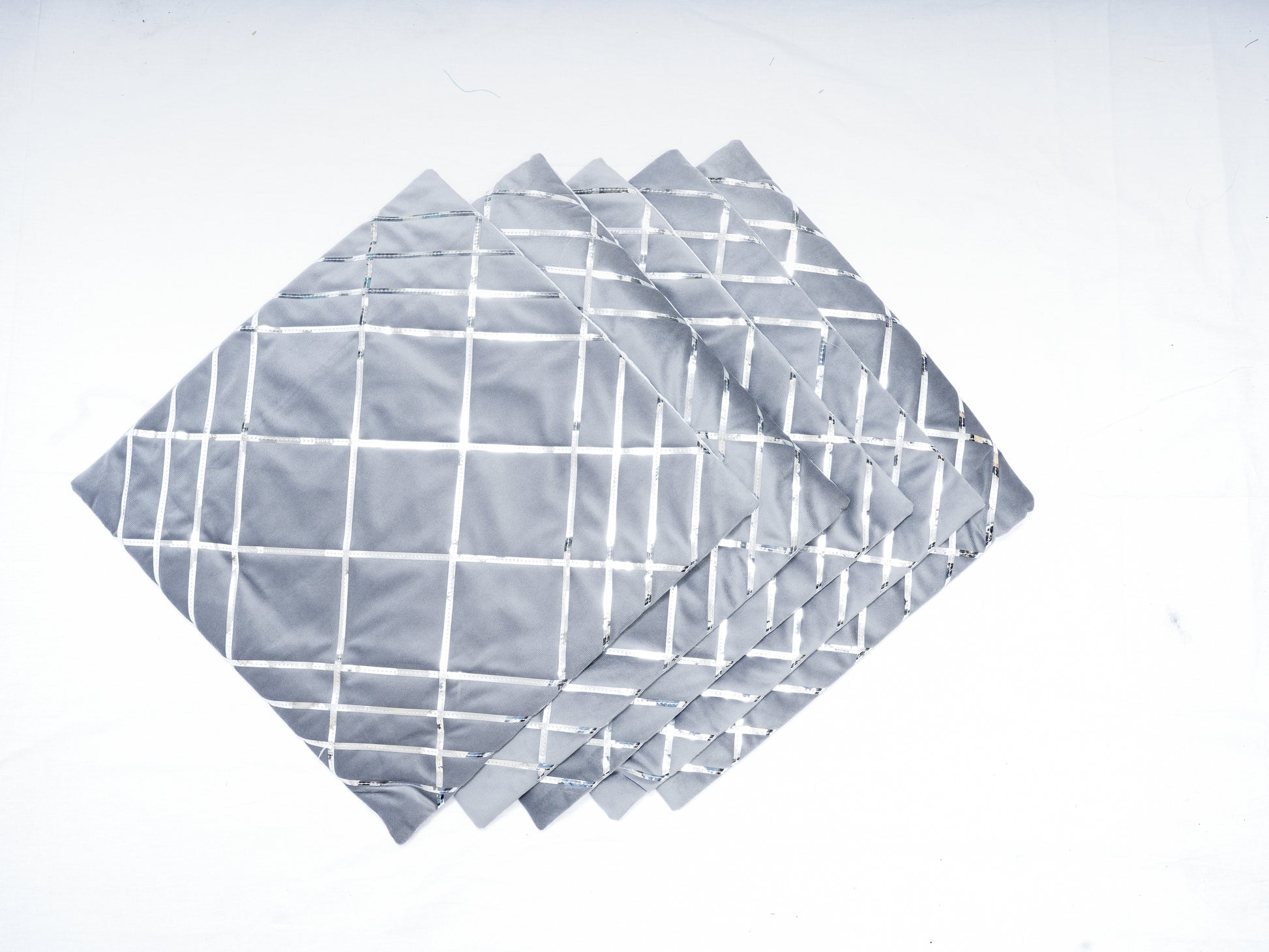 Elevate your home décor with this set of 5 stylish cushion covers, featuring a sleek grey base adorned with a metallic silver grid pattern. These covers strike the perfect balance between modern elegance and minimalistic design, making them an ideal choice for both contemporary and classic interiors.