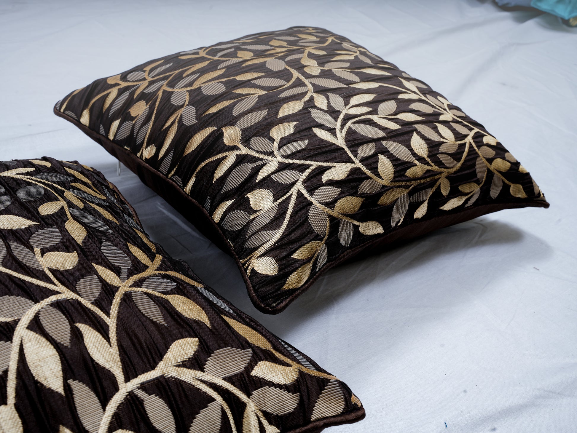 Elevate your home décor with these luxurious black cushion covers adorned with an elegant golden leaf pattern. The rich contrast of black and gold adds a touch of sophistication, making them perfect for modern, festive, and classic interiors alike.