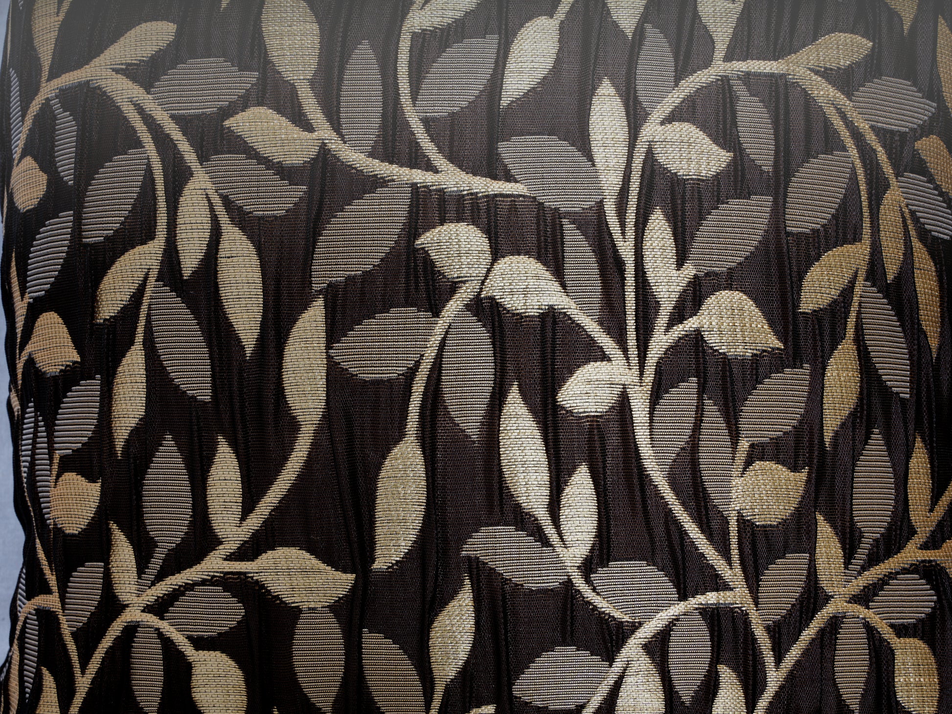 Design: Intricate golden and beige leaf motifs on a deep black base