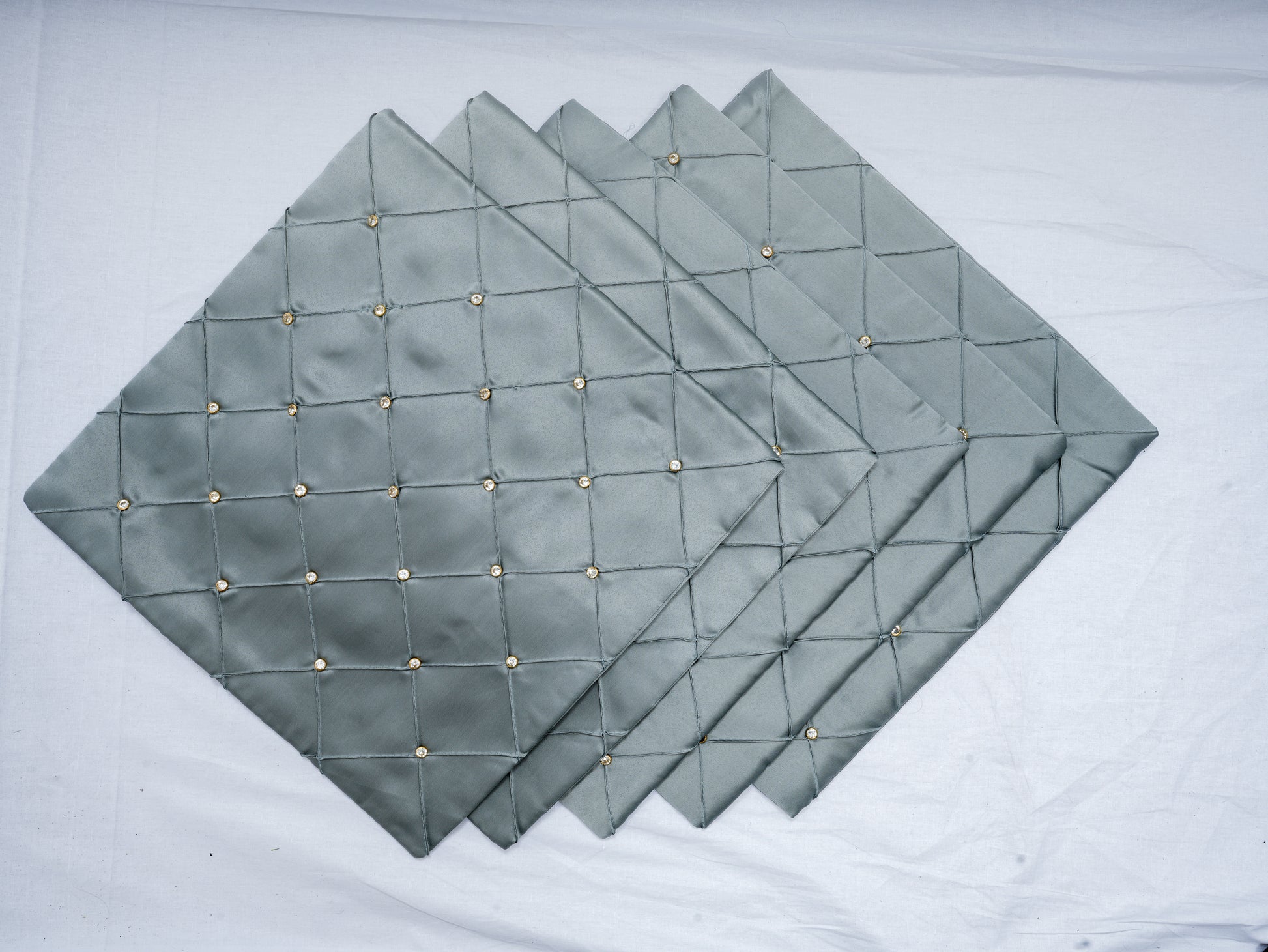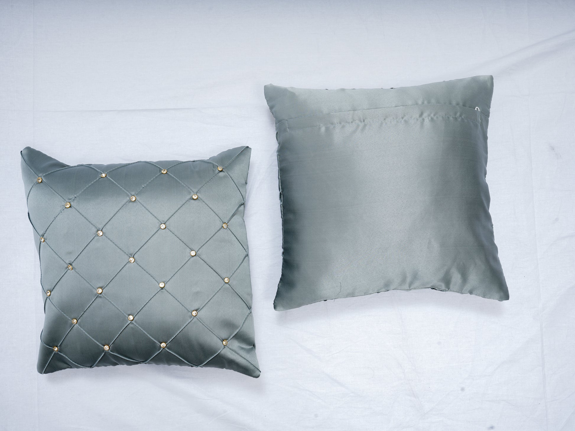 Elegant Diamond-Studded Grey Cushion Covers (Set of 5) – 16x16 Inches