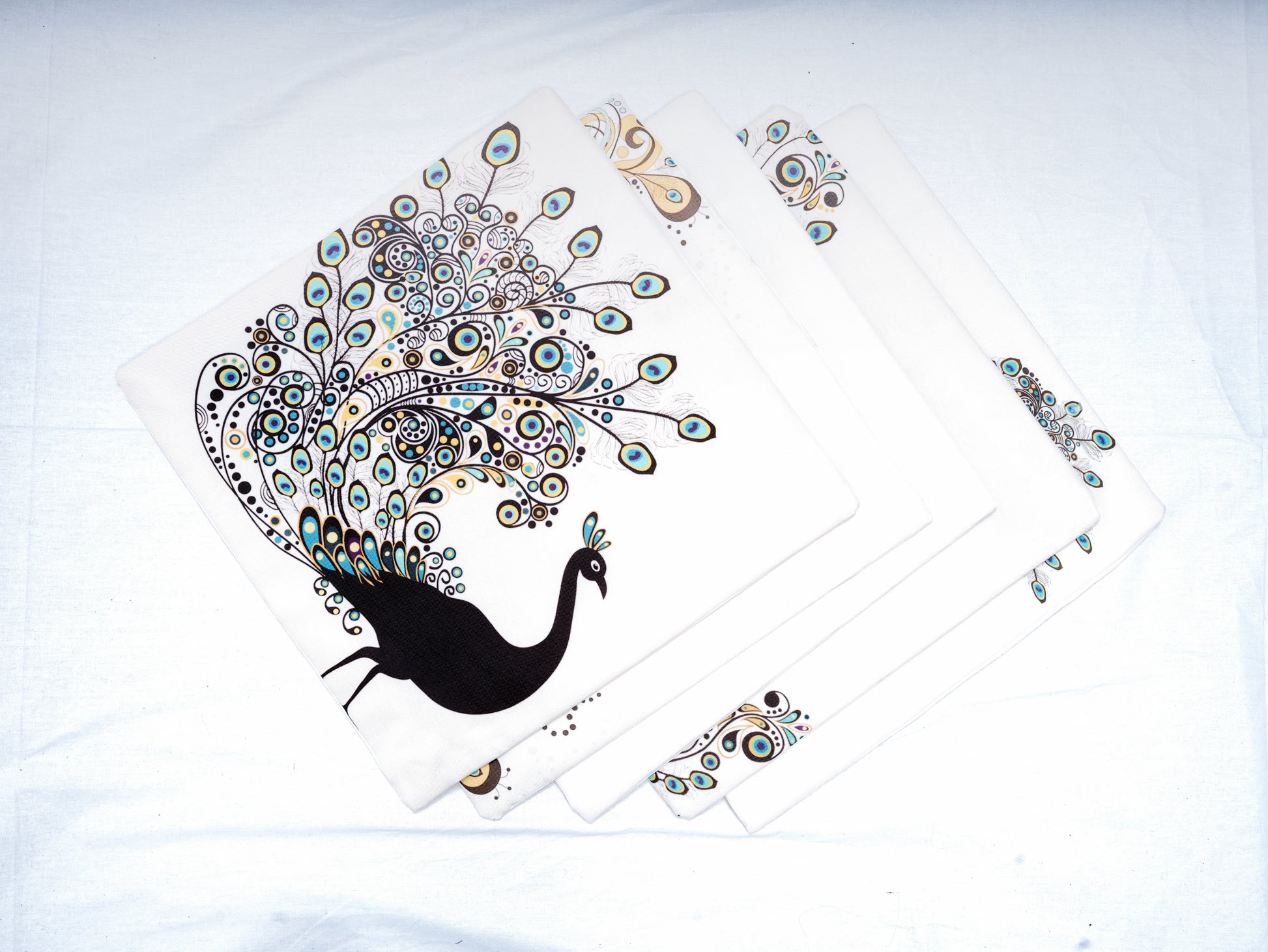 Transform your interiors with these artistic peacock-themed pillow covers – where tradition meets modern elegance.