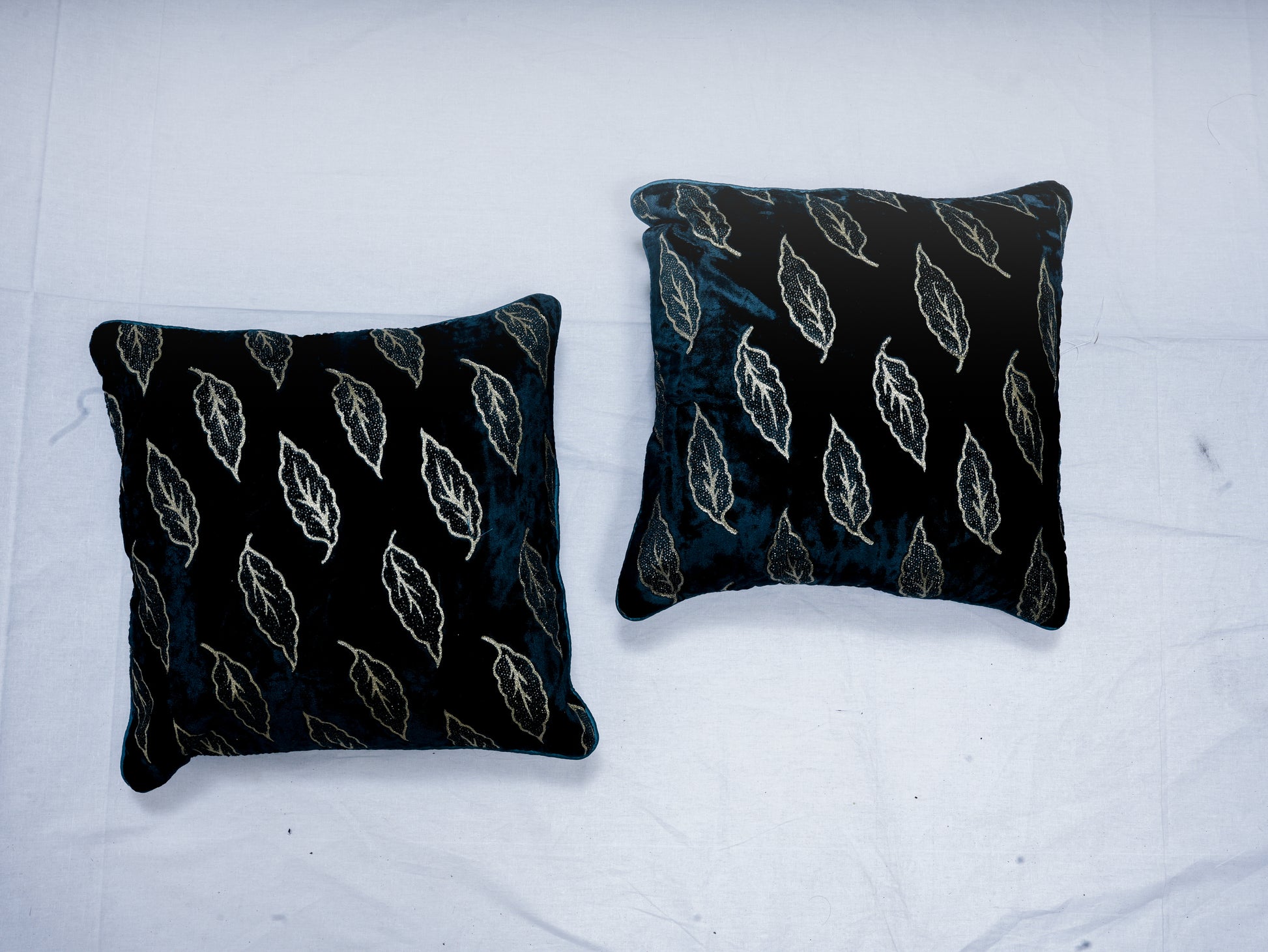Upgrade your interiors with these blue velvet leaf design cushion covers – where timeless elegance meets modern luxury.